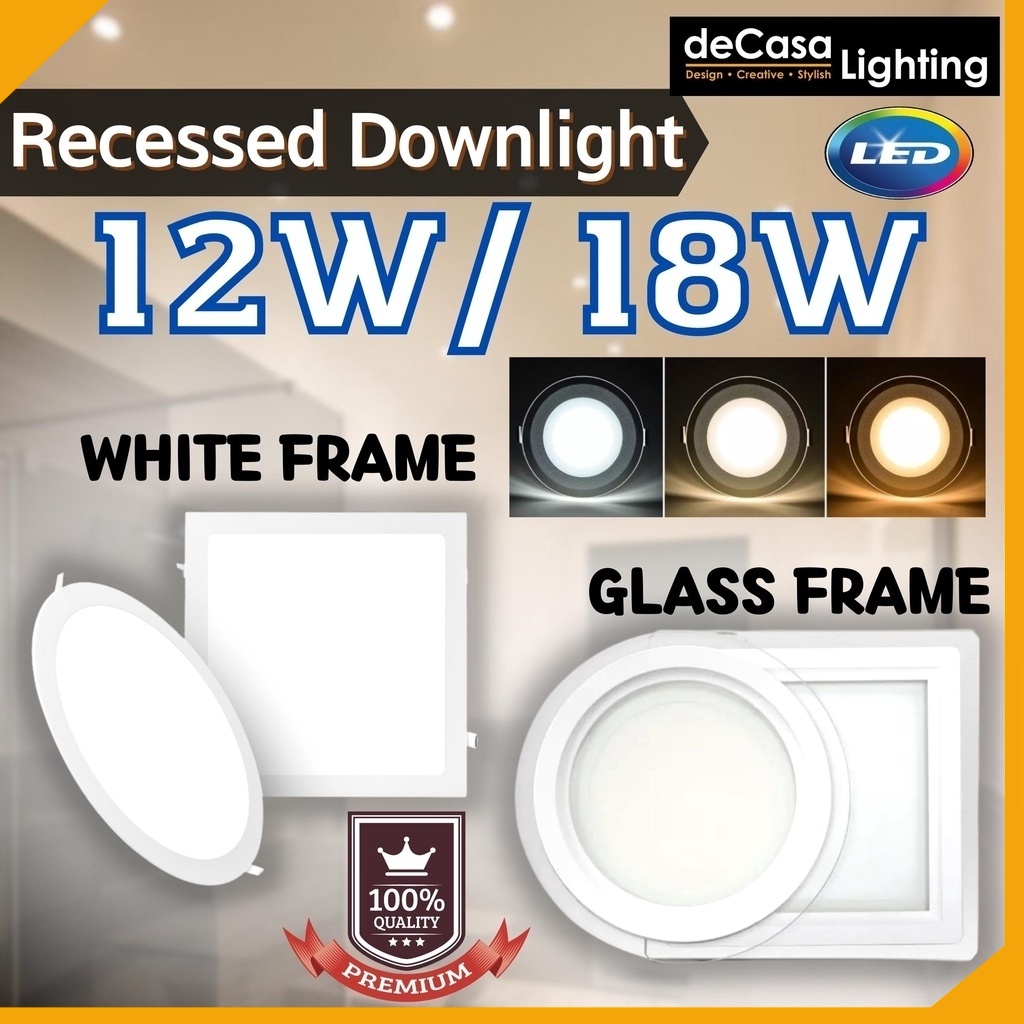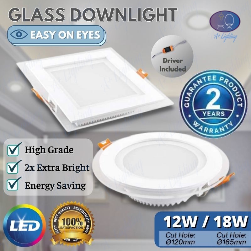 2 Year Warranty 6 18w 4 12w Glass Led Downlight Round Square Panel Light Ceiling Light Lampu Siling Led Bulat Petak Shopee Malaysia