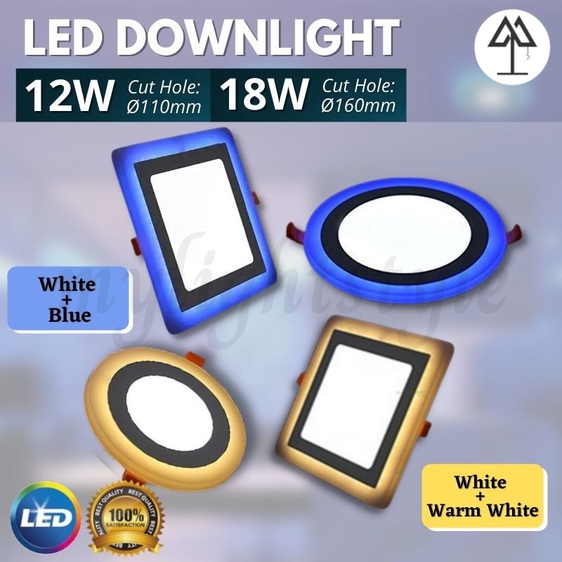 4 12w 6 18w Double Color Led Downlight Led Panel Light Ceiling Light 3 Modes Step Recess Downlight Lampu Siling Led Shopee Malaysia